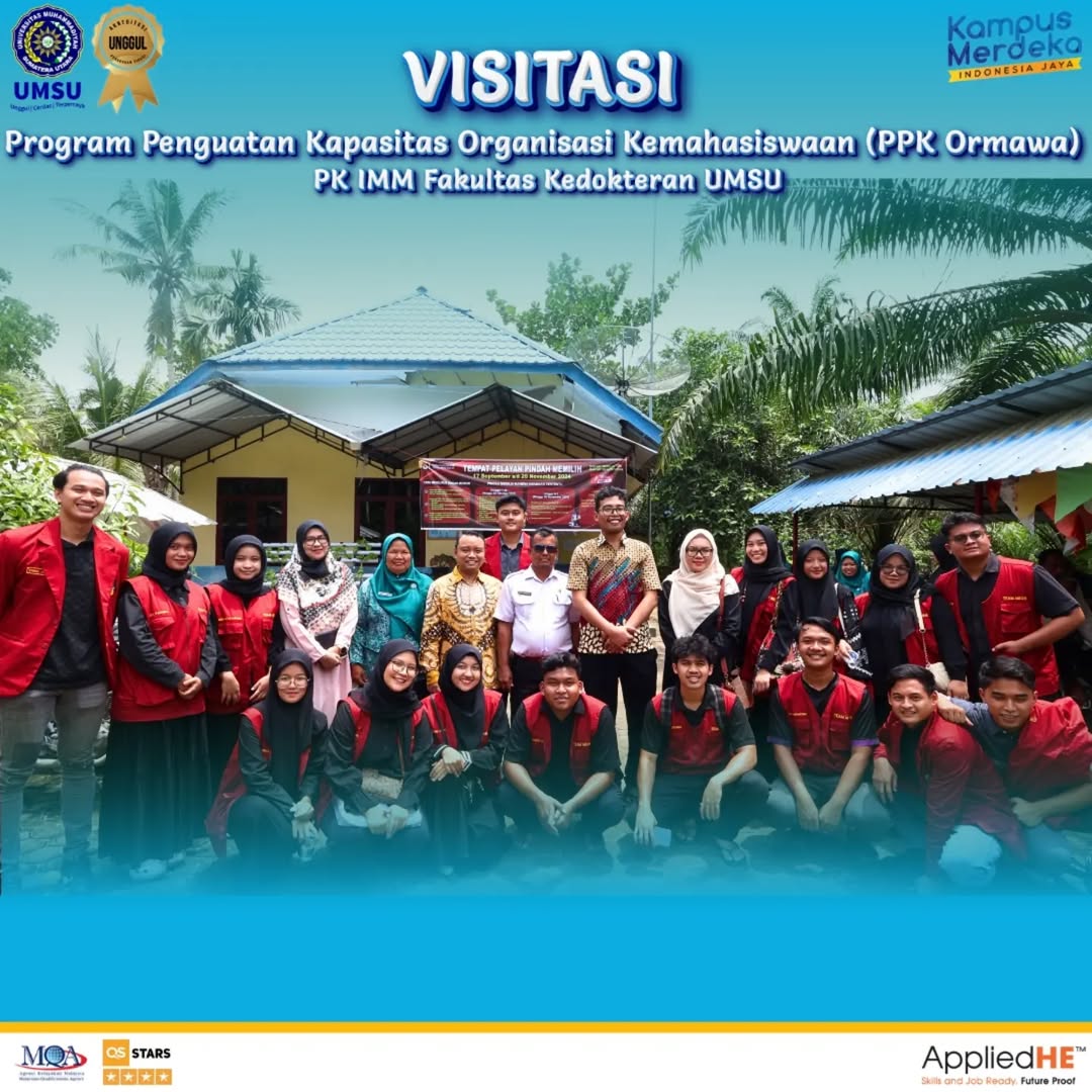 Turut berhadir pada kegiatan ini Wakil Dekan III FK UMSU Bapak dr. Muhammad Edy Syahputra Nst, M.Ked (ORL-HNS), Sp.T.H.T.B.K.L, Ketua Unit Kemahasiswaan, Alumni dan Kerja Sama FK UMSU sekaligus Dosen Pendamping Tim PPK Ormawa PK IMM FK UMSU Ibu Assoc. Prof.Dr. dr. Humairah Medina Liza Lubis, M.Ked (PA)., Sp.PA