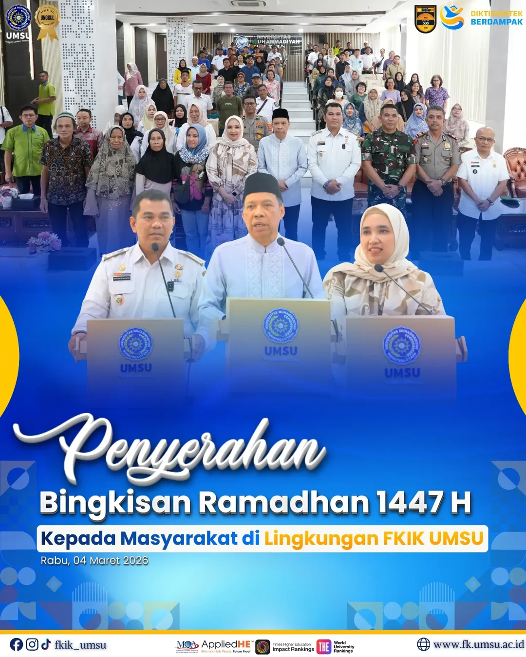 Medan – Bulan suci Ramadhan 1447 Hijriah menjadi momentum istimewa bagi civitas akademika Fakultas Kedokteran dan Ilmu Kesehatan Universitas Muhammadiyah Sumatera Utara (FKIK UMSU) untuk berbagi kebahagiaan dengan sesama. Dalam semangat mempererat silaturahmi dan menebar keberkahan, FKIK UMSU menyelenggarakan kegiatan Penyerahan Bingkisan Ramadhan 1447 H kepada masyarakat di lingkungan sekitar kampus.